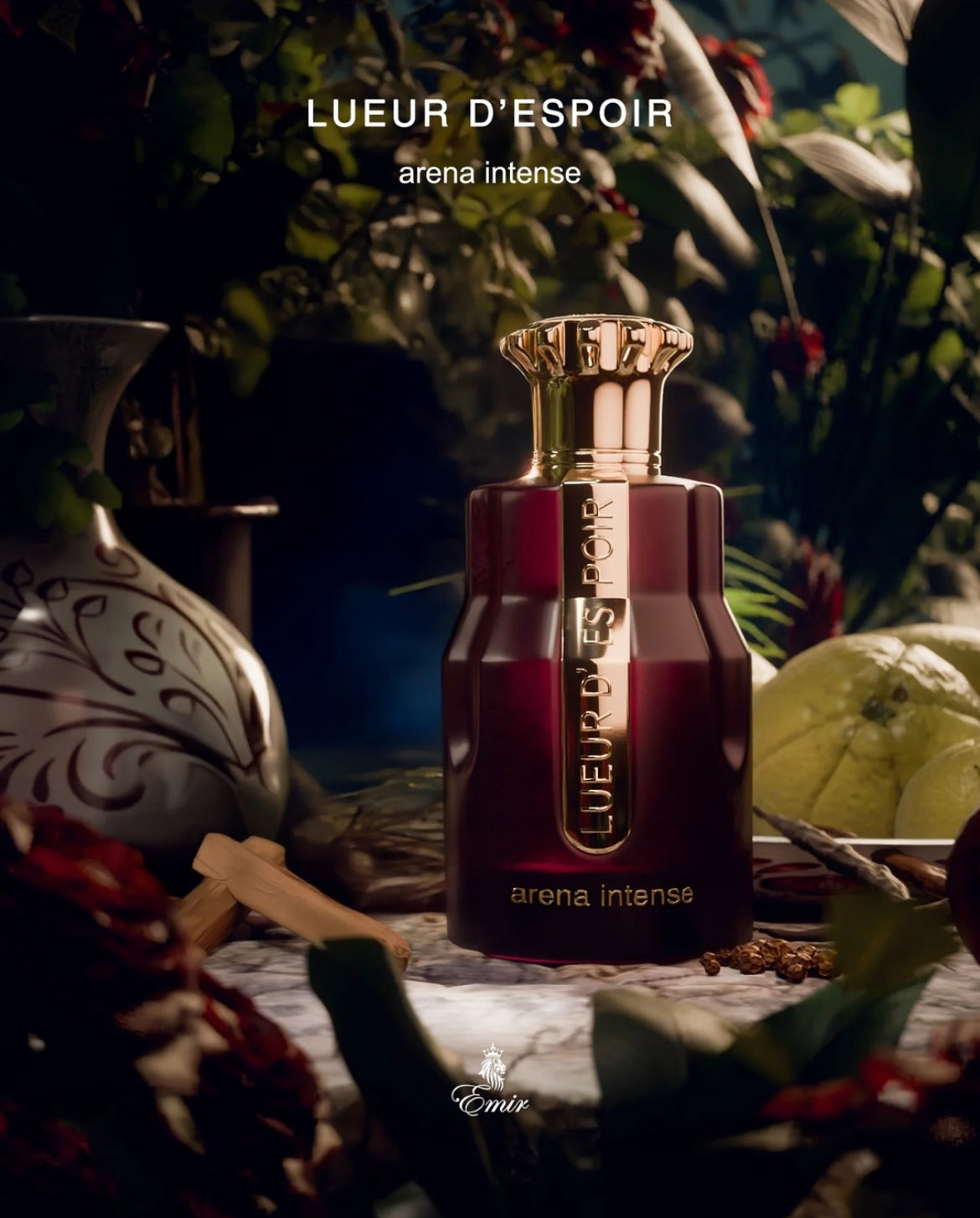Lueur d'Espoir Arena Intense de PARIS CORNER est un parfum Orientale boisé pour homme et femme. C'est un nouveau parfum. Lueur d'Espoir Arena Intense a été lancé en 2025. La note de tête est Bergamote; les notes de coeur sont Safran, Élémi, Rose, Poire et Poivre noir; les notes de fond sont Ambre, Bois de santal, Patchouli, Vanille, Musc et Bois sec.