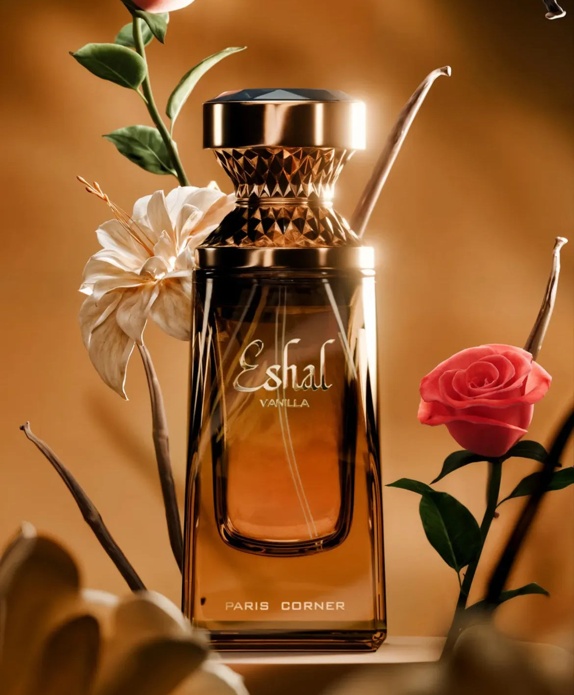 Eshal Vanilla de PARIS CORNER est un parfum Orientale Vanillé pour femme. C'est un nouveau parfum. Eshal Vanillaa été lancé en 2025. Les notes de tête sont Sucre et Notes sucrées; les notes de coeur sont Jasmin et Rose; les notes de fond sont Vanille, Caramel et Musc.